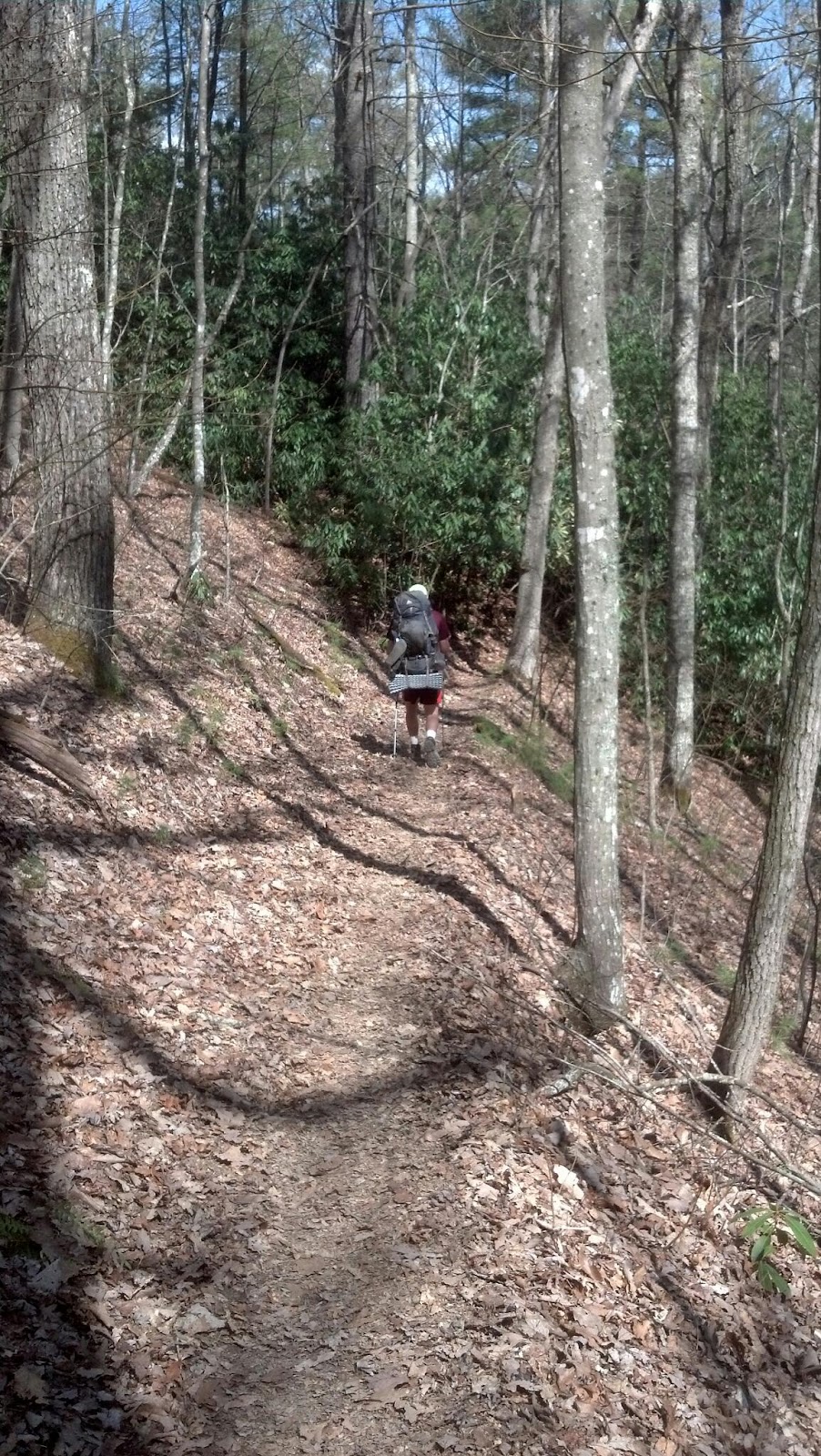 We got on trail at 8:15 am. Rabbit, Guard, Great Legs and I hiked together all day. We were spaced out at times, but met back up every few miles. Today was another clear and warm day. Around 70 degrees this afternoon. We got to Hot Springs in the afternoon. Our first stop was at the Smoky Mountain Diner. The four of us had the Hiker Special 12 oz burger with fries. I was full! We are all sharing a very small cabin. One reason for pushing the miles was to get somewhere that I had a chance to watch the NCAA championship basketball game. I am going to take a zero tomorrow. I plan to stay at the Sunnybank Hostel. I've done a fair amount of miles over the last few days, so I want to give my feet a break before heading north. The next town I'll come to is Erwin Tn, 68 miles away.